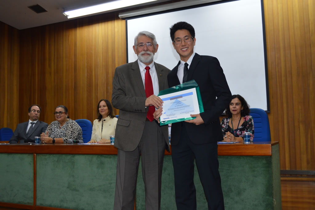 O professor Lineu A. Ayres da Silva foi convidado para saudar os homenageados da solenidade de premiação em nome das empresas e instituições premiadoras e entregou o prêmio ao aluno Caio Tadashi Kawaoku em 28 de dezembro de 2018